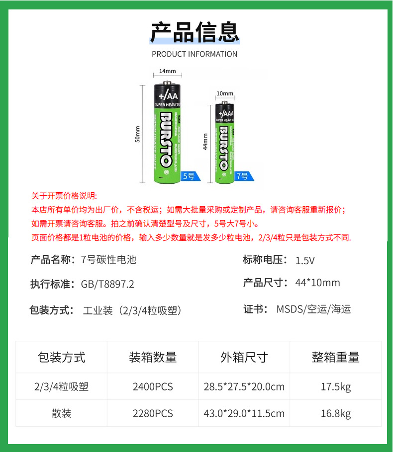 • 产品名称:七号碳性电池